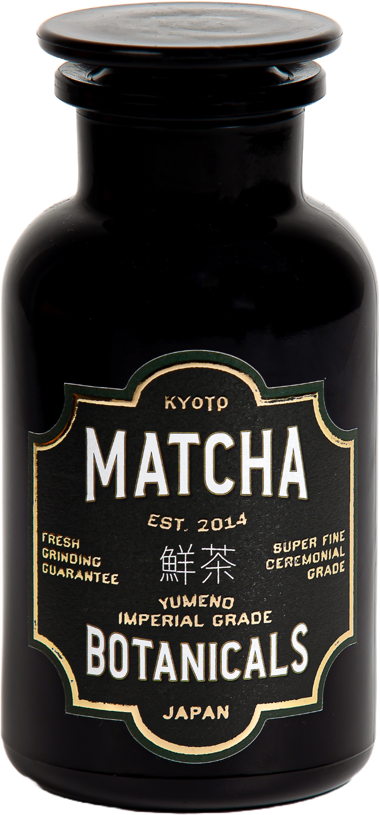 Notre Matcha est livré dans des récipients hermétiques et protégés des rayons lumineux qui pourraient l'endommager, en verre noir spécial, un matériau inerte qui ne réagit pas avec le Matcha.